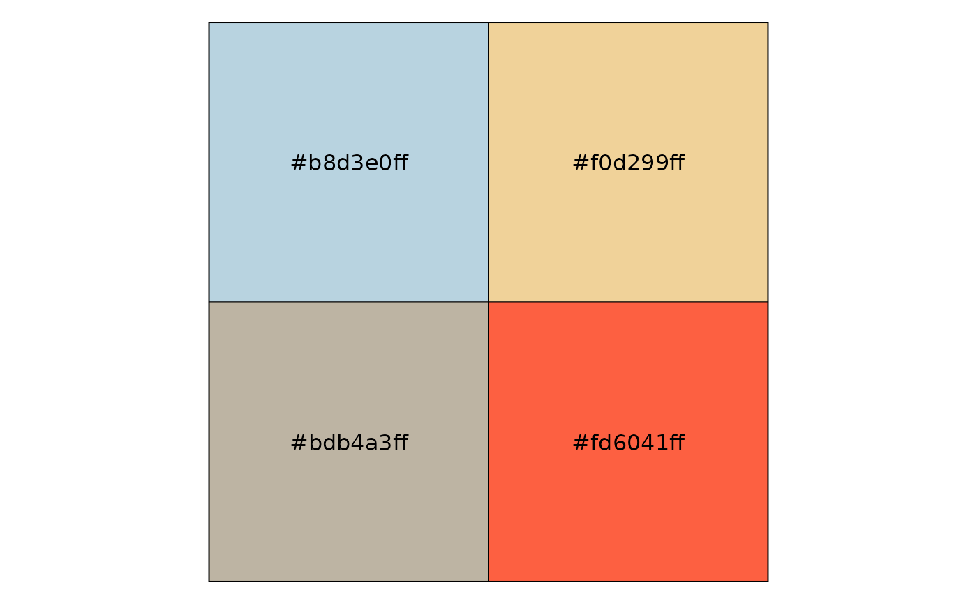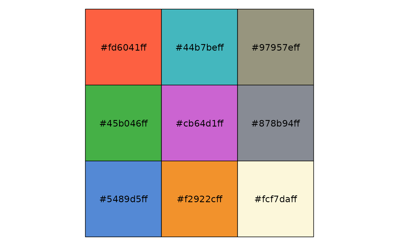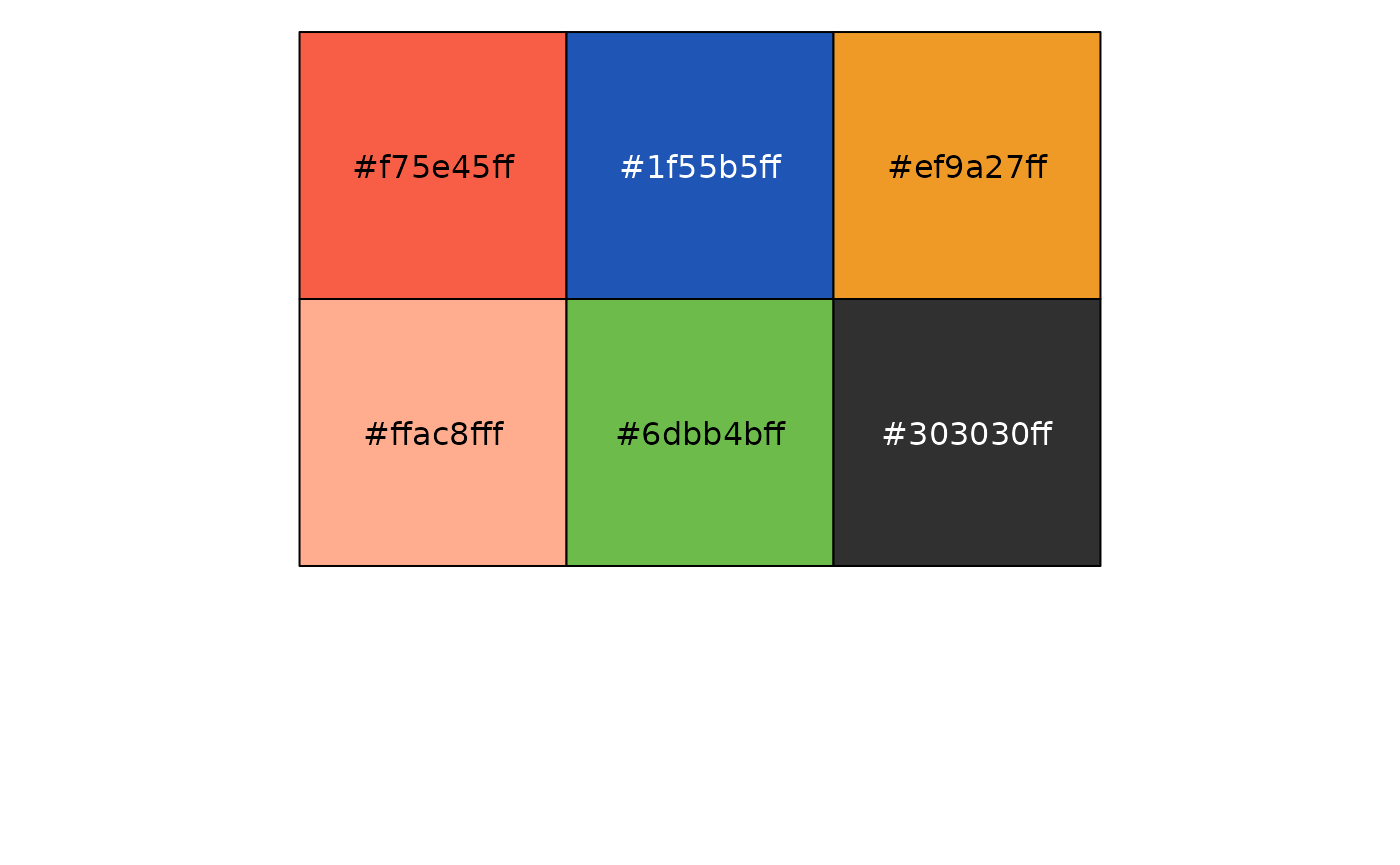 #> [9] "suit" "surfing"Notice that as of this version, we store two single colors in palettes for convenience. One of them is the background for the theme. The other one is the ba. It’s likely that these colors will be internalized in the future