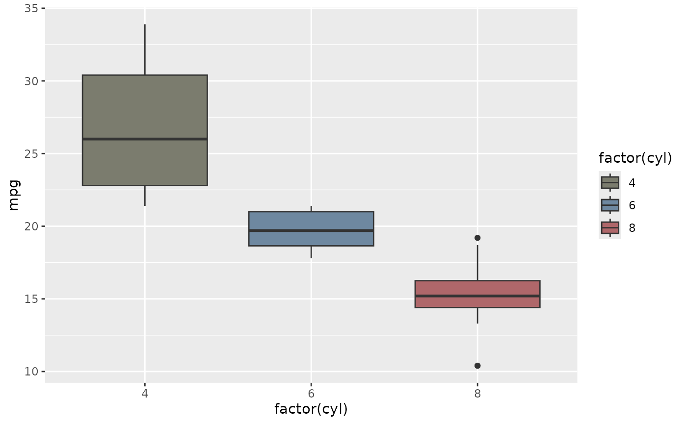 p <- ggplot(mtcars, aes(factor(cyl), mpg, fill = factor(cyl))) +